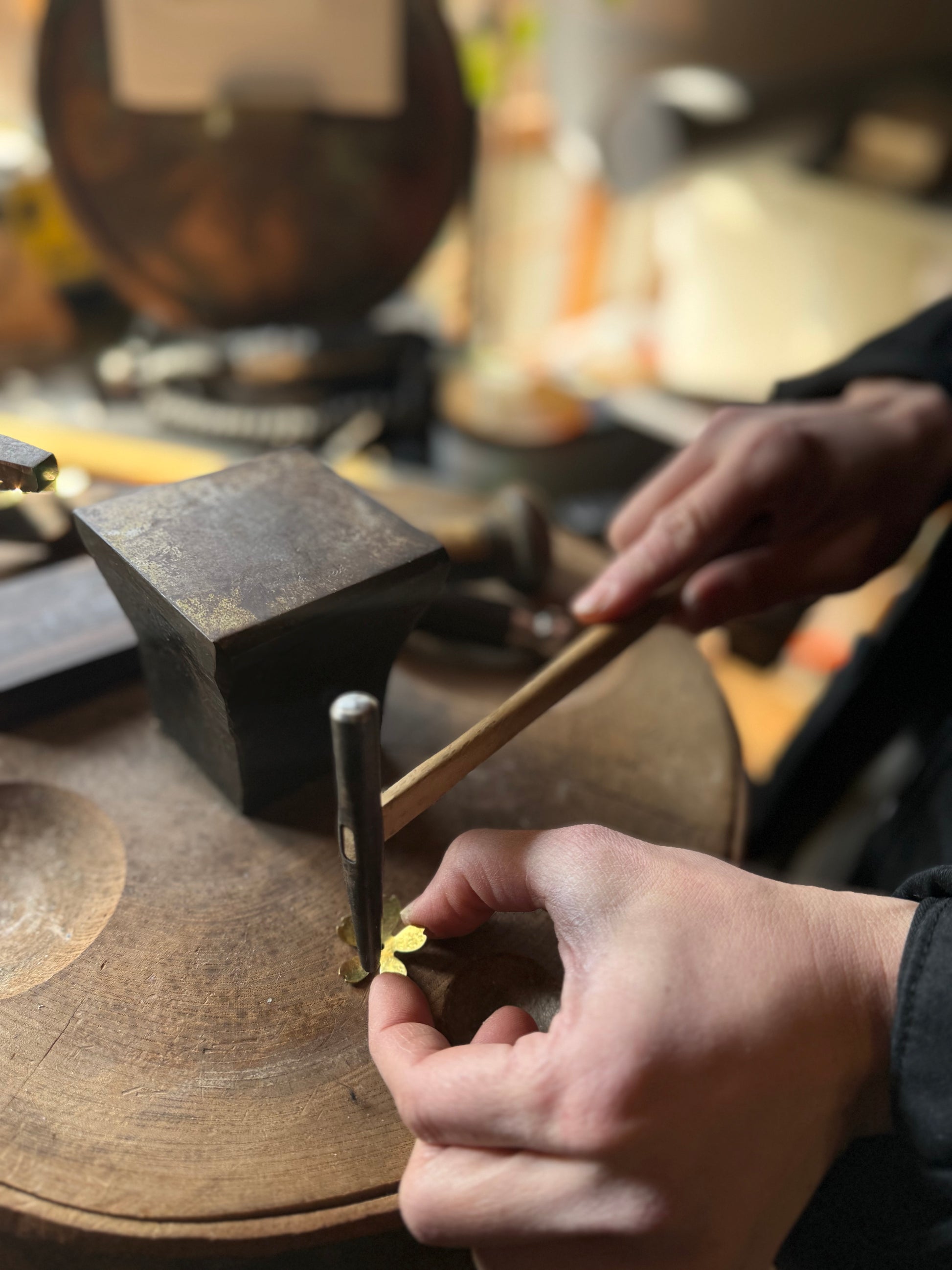 By creating fine bumps with a hammer, the light is gently reflected and gives off an elegant shine.